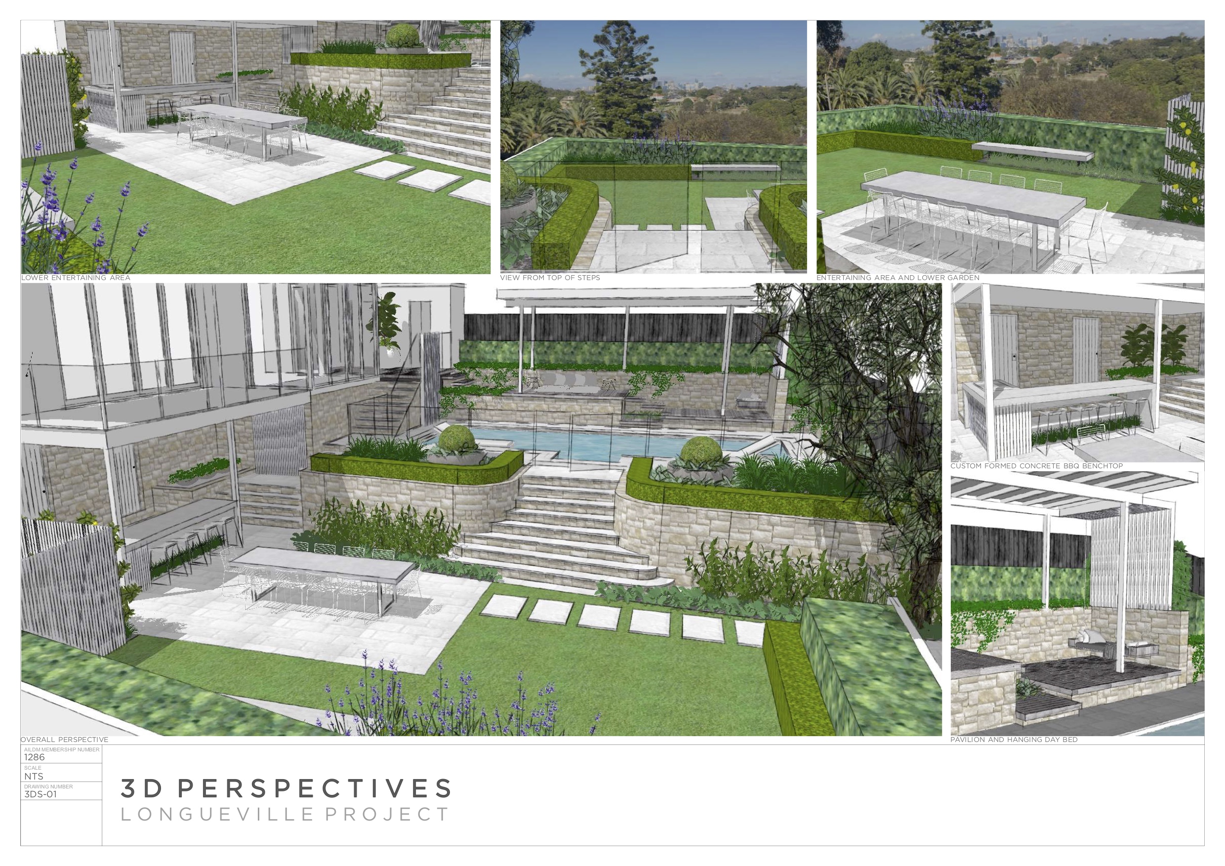 The homeowners completed a recent house renovation and realised there was a disconnect between the house and garden. The property had stunning views of the city and an existing pool that were both under utilised, and this formed the platform for the new concept design.
