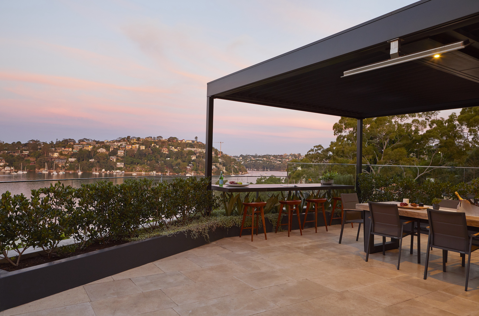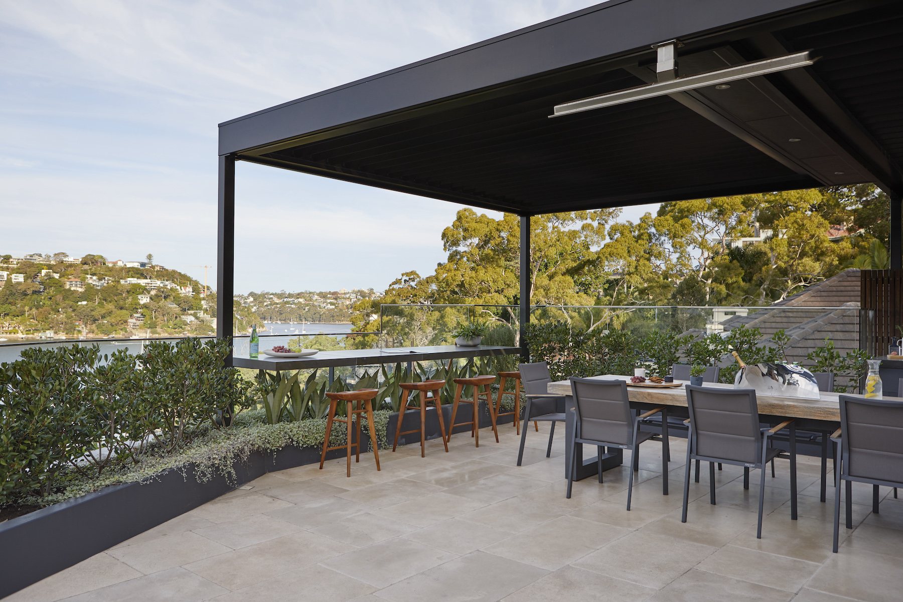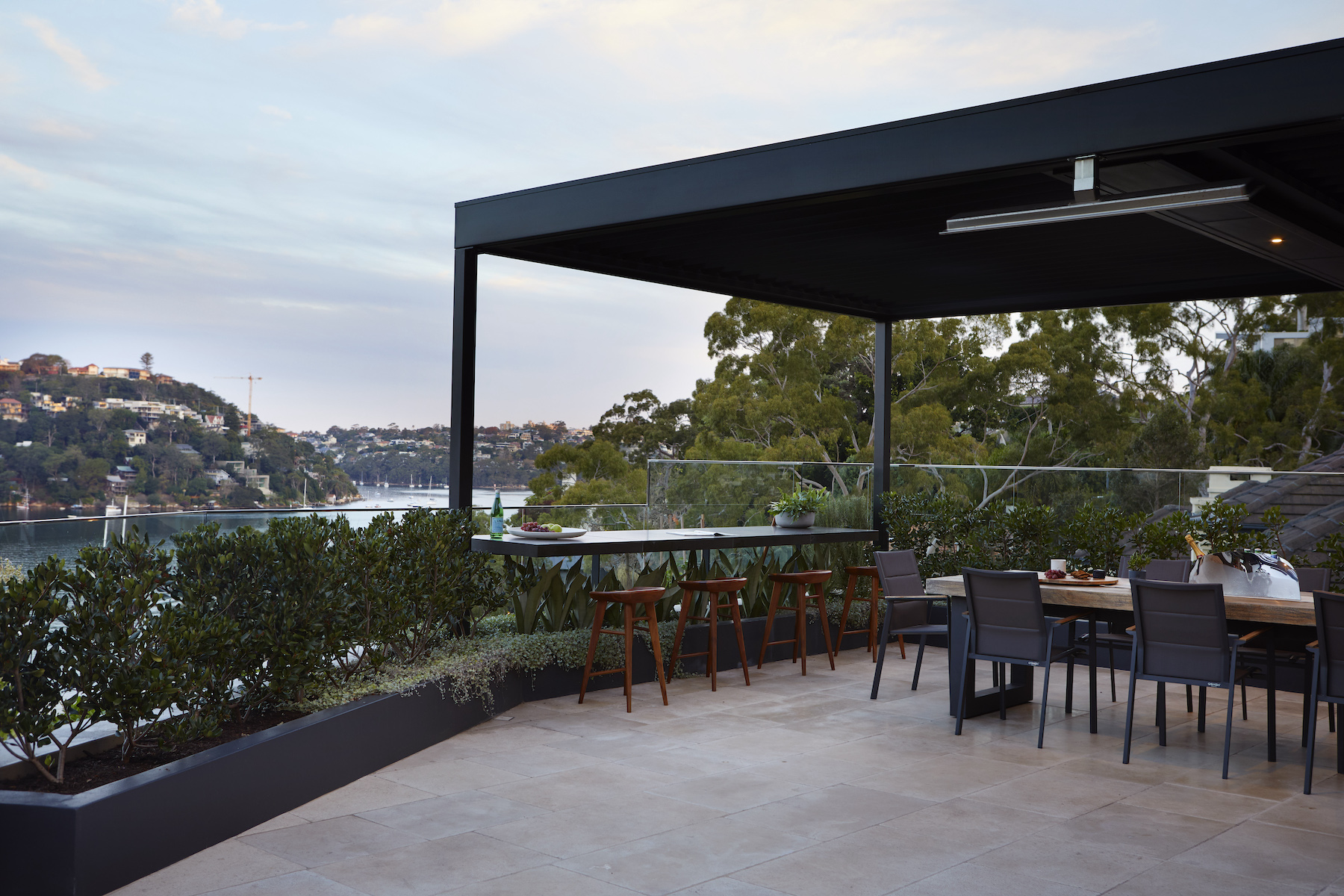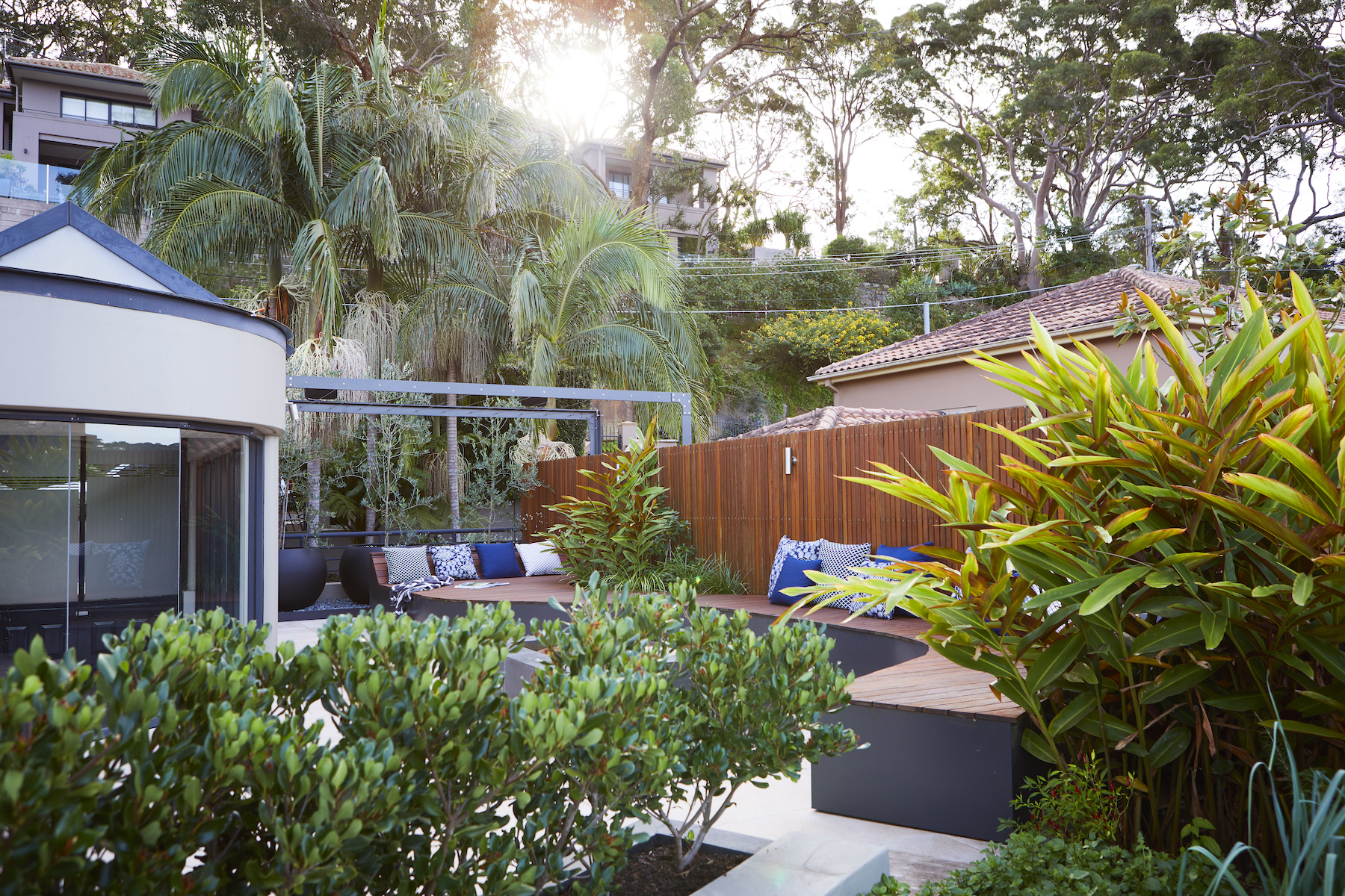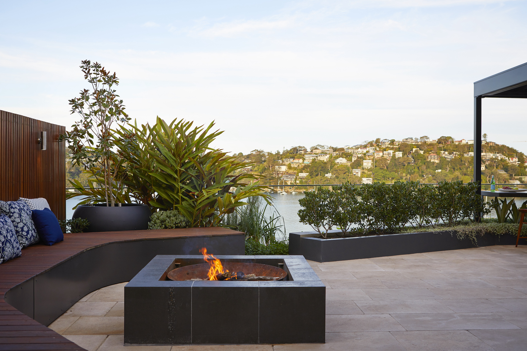 In this lower north shore harbourside home, we transformed the under-utilised rooftop garden with a design that enabled the family to entertain groups of friends and enjoy private, more intimate spaces for casual lounging.