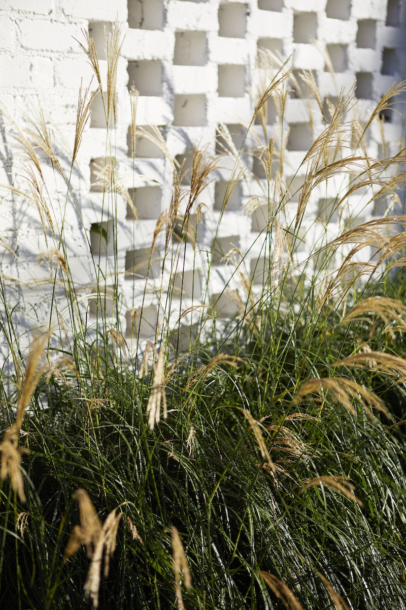 Zoyzia tenufolia, Banksia serrata, Miscanthus sinensis, Rosmarinus officinalis prostrata